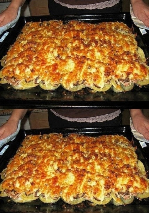 — Картофель очистить и нарезать тонкими ломтиками. Лук порезать полукольцами. Грибы порезать небольшими кубиками, смешать с фаршем и приправить солью и перцем.