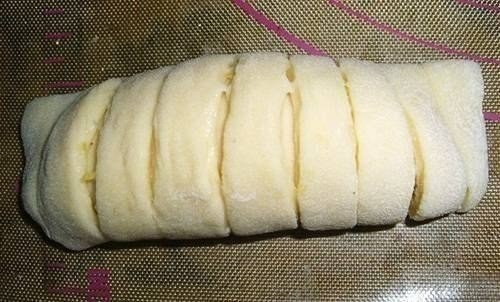 Смешать все сухие ингредиенты: муку, сливки(молоко), дрожжи, сахар, соль. яйцо взбить вилкой и соединить с водой и постепенно вводя в мучную смесь, замесить тесто. Добавить цедру и масло, вмесить в тесто.