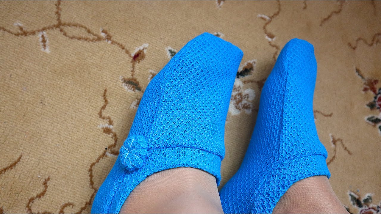 11) Соединила тапки и эту кромку, прострочила и обметала, тапки готовы. Они получились как раз по ноге, даже немного свободные.