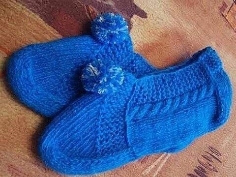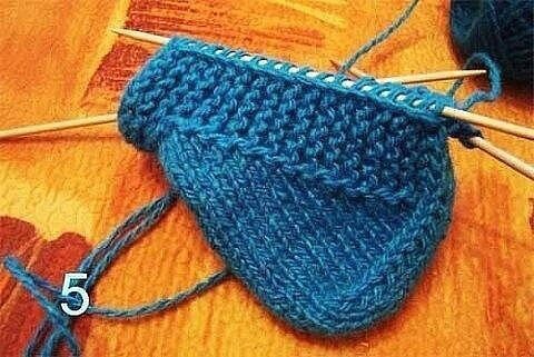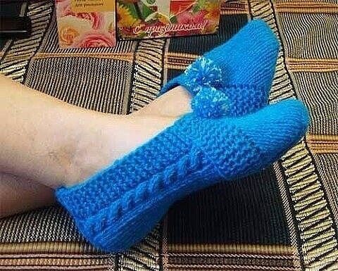 Вывязываем пятку по принципу мыска ( см.выше). Выделяем средние 9 петель. Последние 8 рядов вяжем платочной вязкой. Петли закрыть. Украсить тапочку можно помпоном, бантом, цветком.