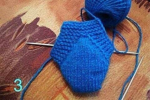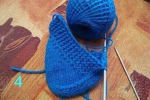 Затем выделяем средние 9 петель и закругляем мысочек по типу пятки: 15 петель, затем 9 и 10 петлю провязали вместе. Работу повернули,8 петель провязать,9 и 10 вместе и т.д. пока на спице не останутся только средние 9 петель (см. фото)
