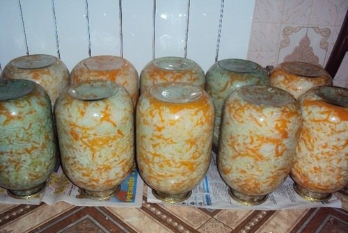 • рассол — 1,2 л. (на 1 л. воды берем 50 гр. соли, 50 гр. сахара).