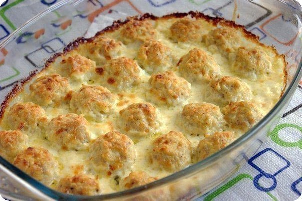 Сыр расплавится и потечет, а сливки пропитают шарики и у вас получится шикарное блюдо собственного приготовления! На гарнир хорошо подойдут тушеные овощи или салатик.