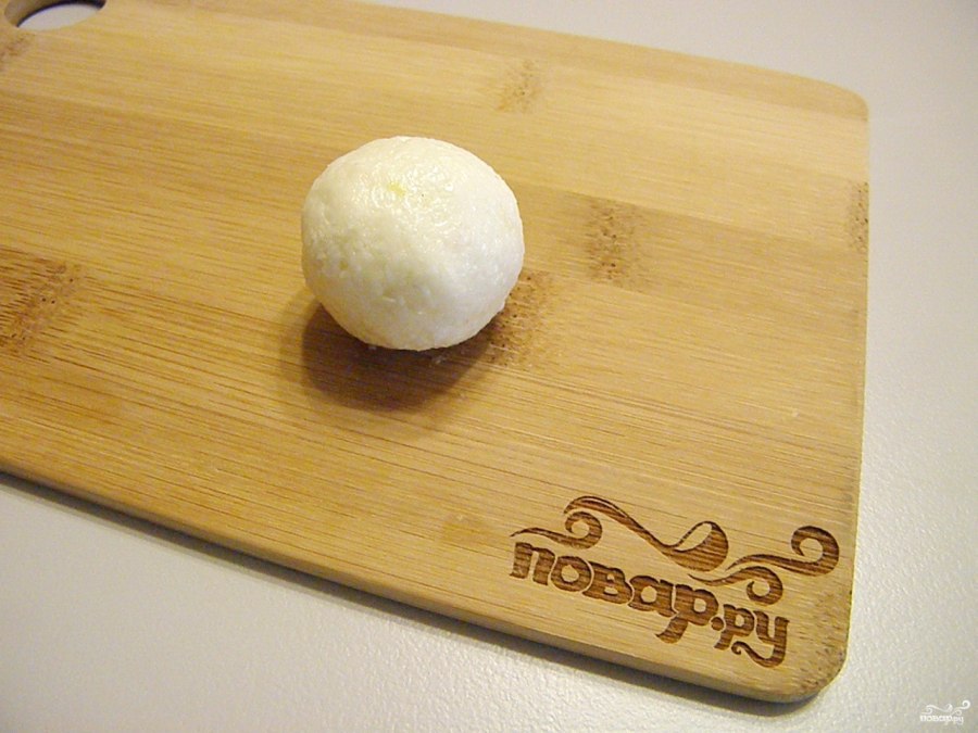 4. И закатайте в шарик. Сырок очень податливый, отлично катается в шарики. Не стоит класть больше майонеза, чем указано в рецепте, шарики должны держать форму.