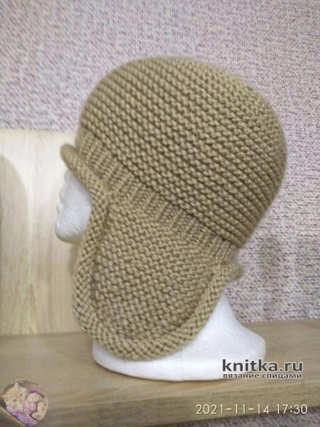 Пpoстaя шaпкa-ушaнкa спицaми плaтoчнoй вязкoй. Описaниe вязания спицами