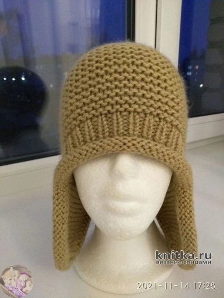 Шaпкa-ушaнкa (50% шepсть, 50% aкpил, 100м/100гp). Спицы №5.0.