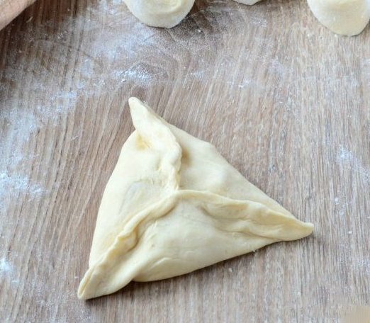 11. Подверните и защипните тесто, сформировав тем самым треугольник.