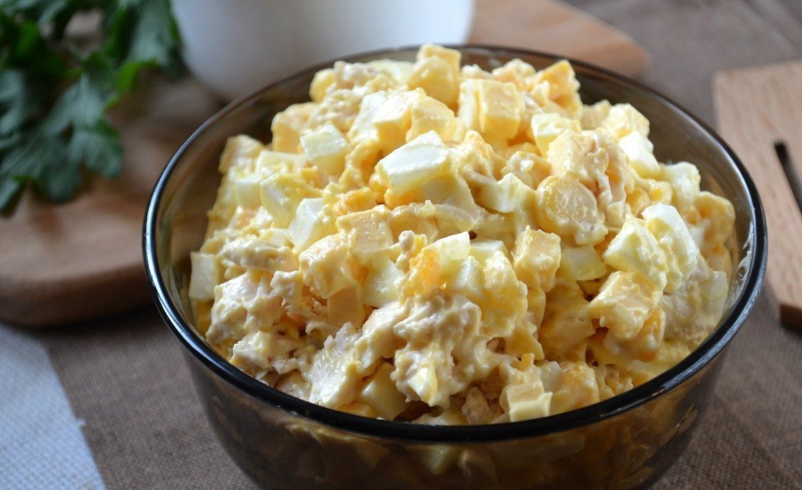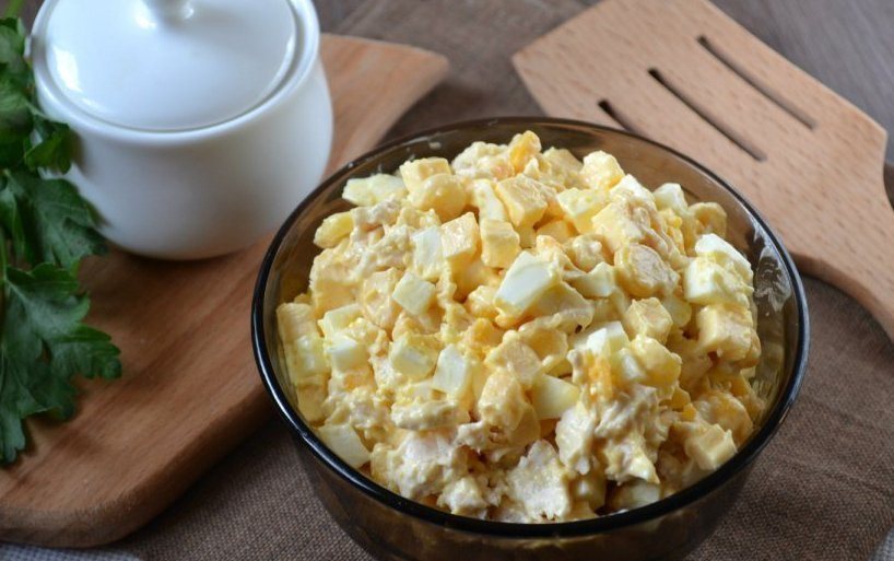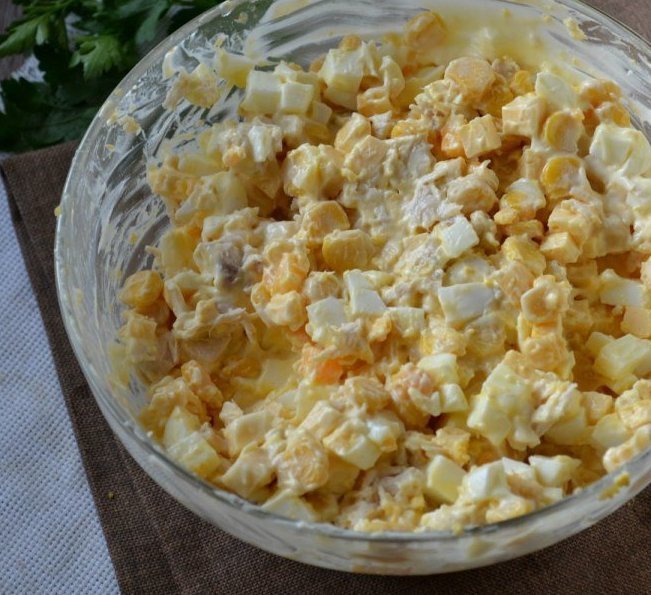 5. Смешайте все ингредиенты в салатнике, заправьте майонезом.