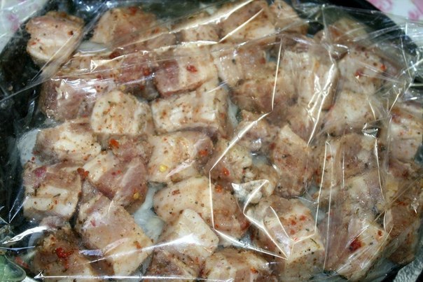 Завязать рукав с другой стороны и сделать 2-3 прокола вверху пакета. Поставить в разогретую духовку до t 250° С на 50 минут. Через 50 минут достать лист и разрезать рукав для поджаривания мяса. При необходимости, можно полить выделившимся соком. И снова поставить в духовку на 30 минут.