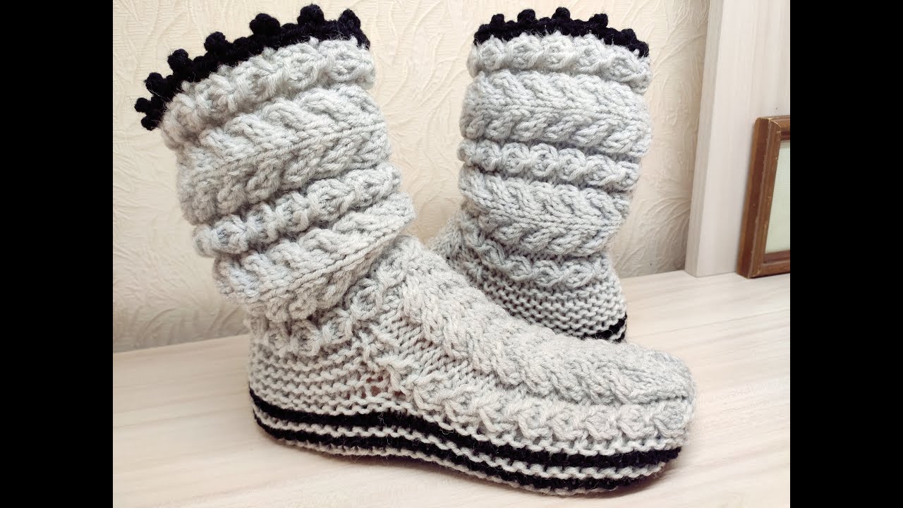 ШИКАРНЫЕ САПОЖКИ-НОСОЧКИ С КОСАМИ ДОМАШНИЕ СПИЦАМИ, Вяжем вместе.
