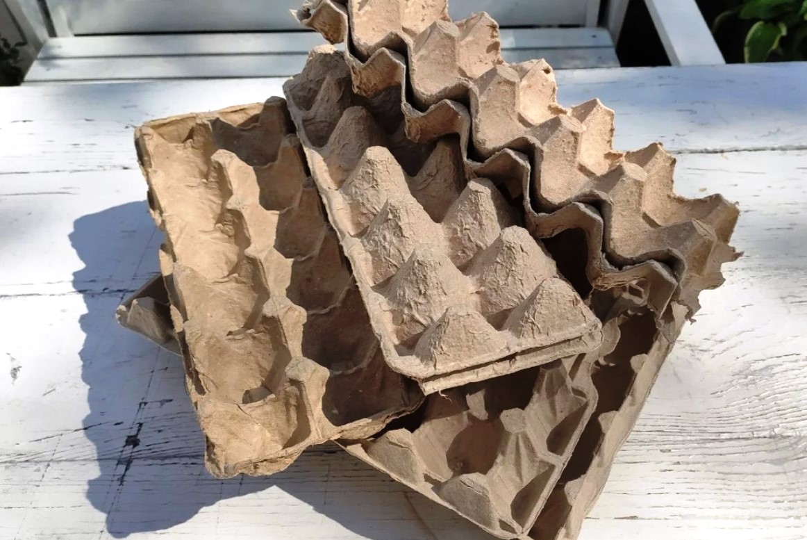 У меня яичные лотки не пропадают зря. Делаю из них кирпичики и украшаю дом
