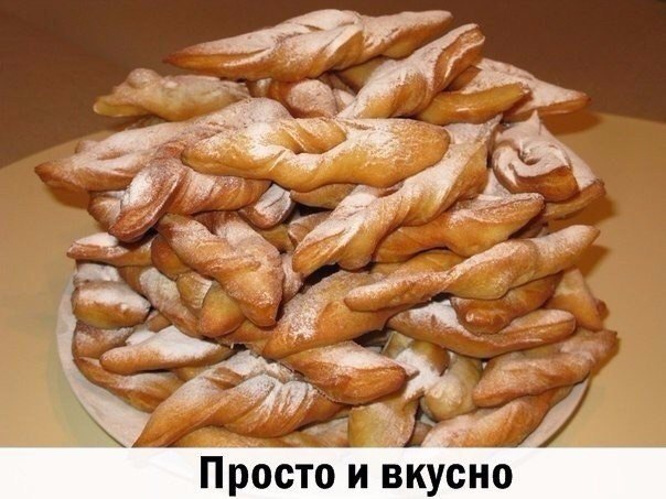 2. Затем посыпать стол мукой, раскатывать прямоугольный пласт не тоньше чем 1 сантиметр (если хотите тонкий хворост то раскатать тоньше).